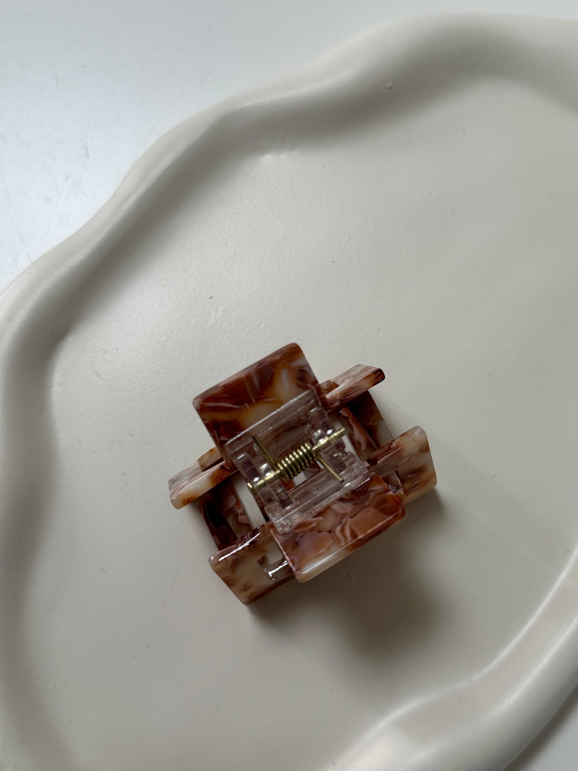 Unsere Mini-Haarklammer „Caramel Marble“ vereint Funktionalität mit elegantem Design. Die einzigartige Marmorierung in warmen Karamelltönen macht jedes Stück zu einem echten Unikat. Durch die stabile Federmechanik sorgt die Klammer für sicheren Halt – ideal für das Zurückstecken kleiner Haarpartien oder als stilvolles Detail im Alltag.