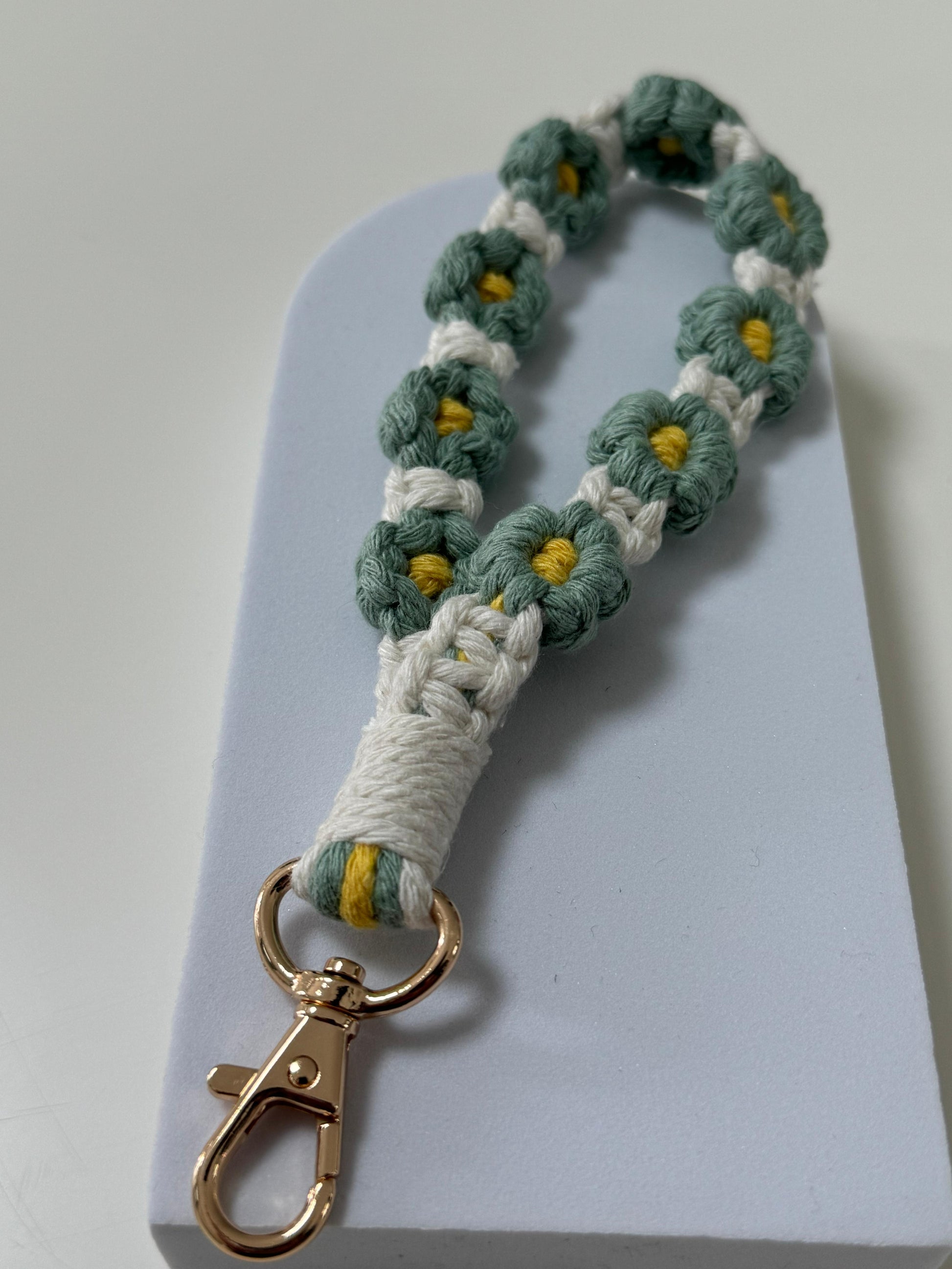 Handgefertigter Makramee Schlüsselanhänger – Blumen-Design