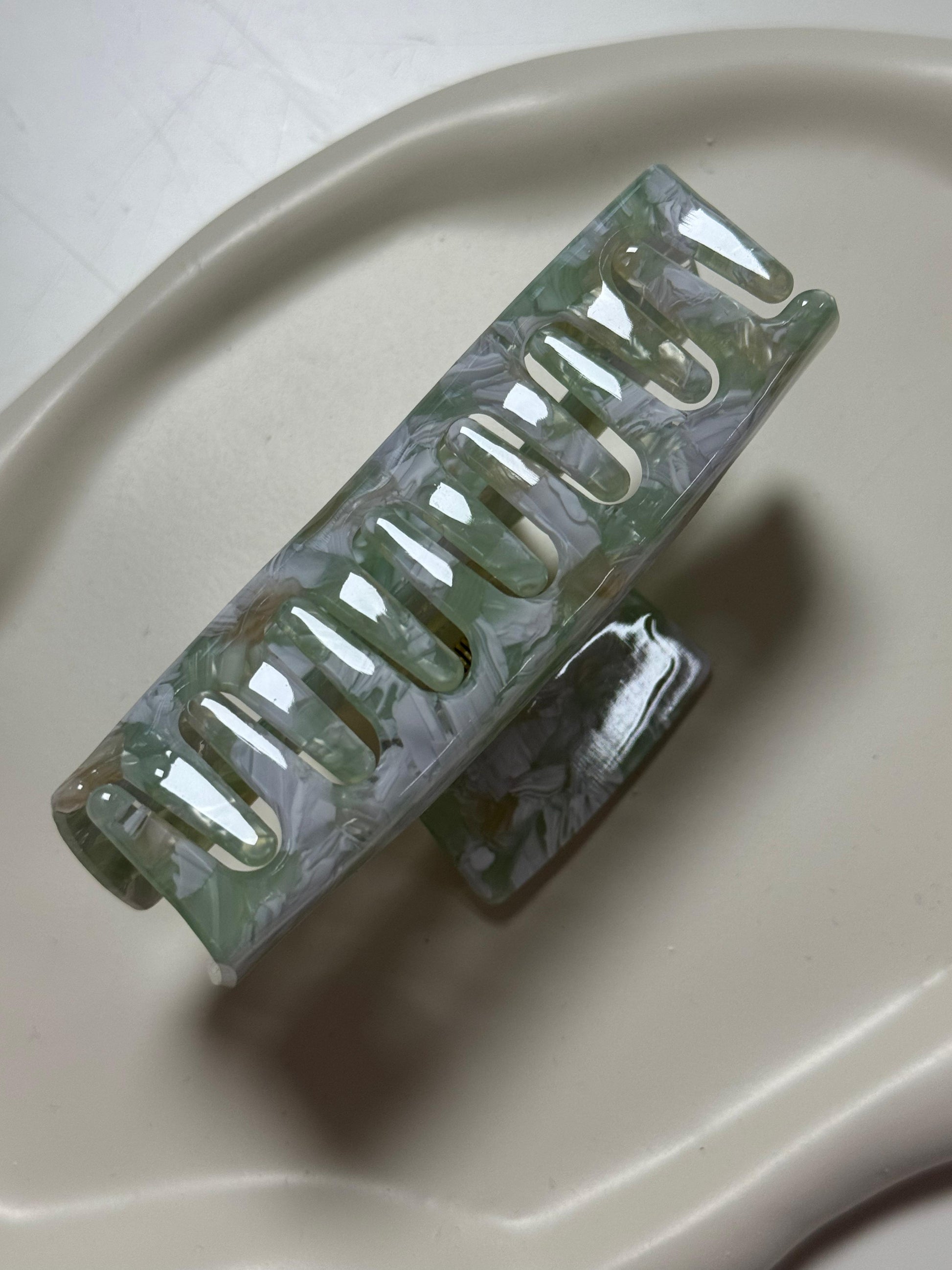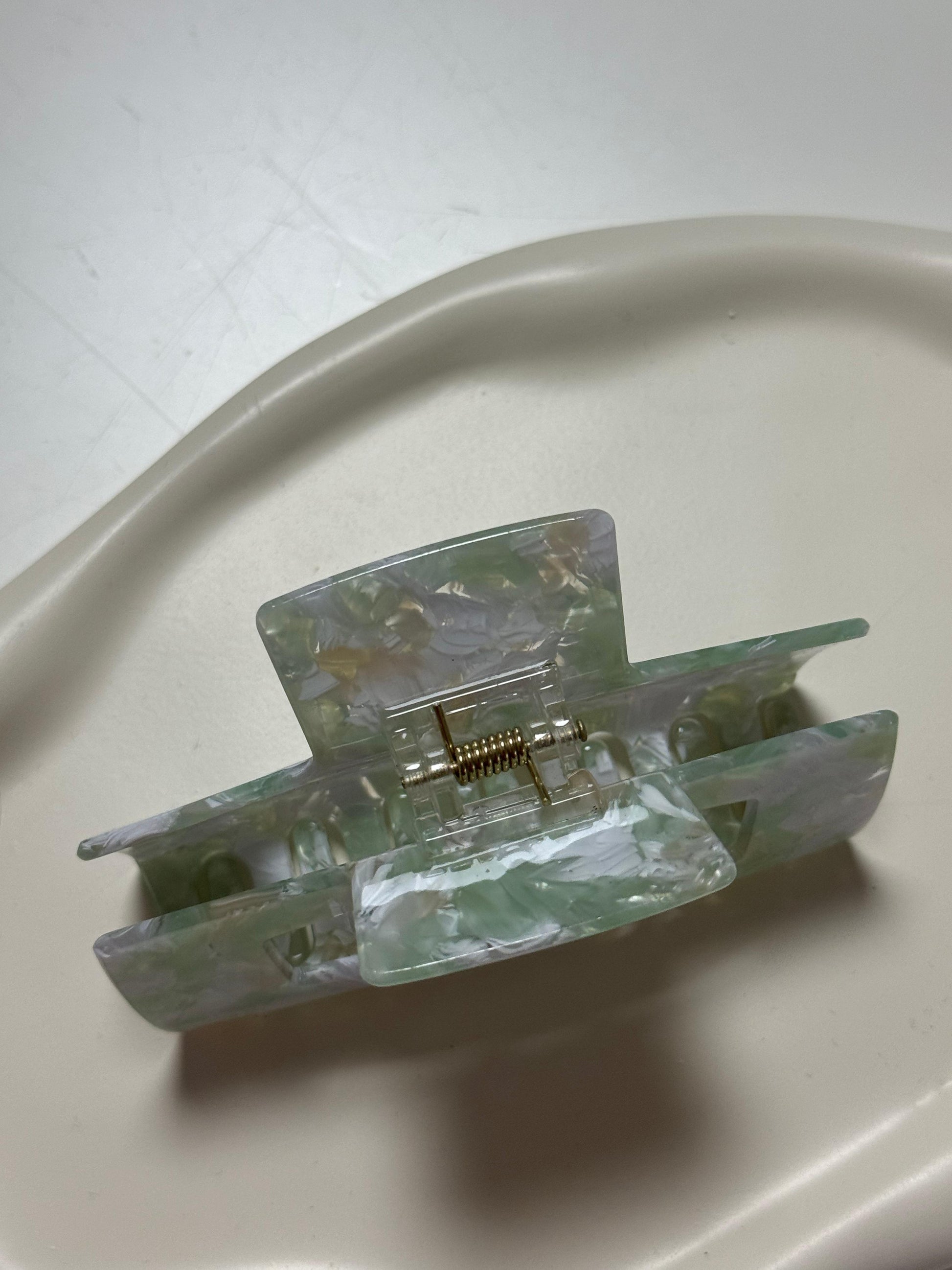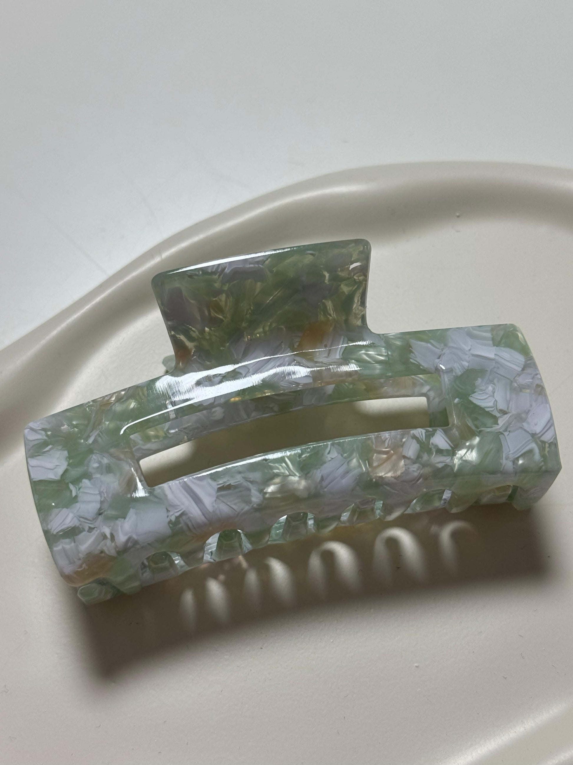 Die Haarklammer „Meadow Glow“ erinnert mit ihrem sanften Mix aus Grün, Flieder und Creme an eine blühende Frühlingswiese. Ihre zarte Marmorierung und der sanfte Glanz verleihen jeder Frisur einen frischen, natürlichen Look. Die stabile Verarbeitung sorgt dafür, dass dein Haar sicher und stilvoll gehalten wird – perfekt für den Alltag oder besondere Momente.