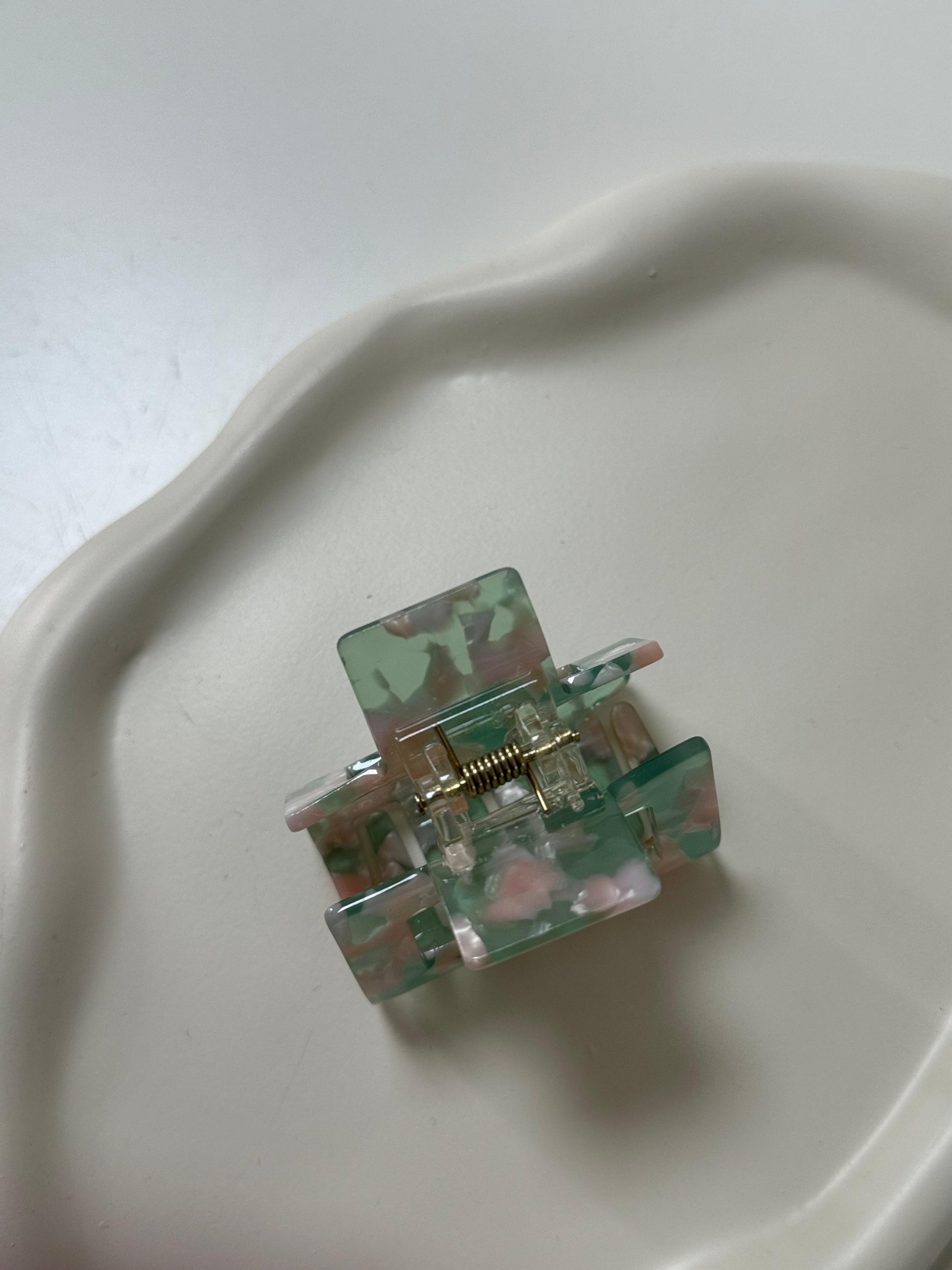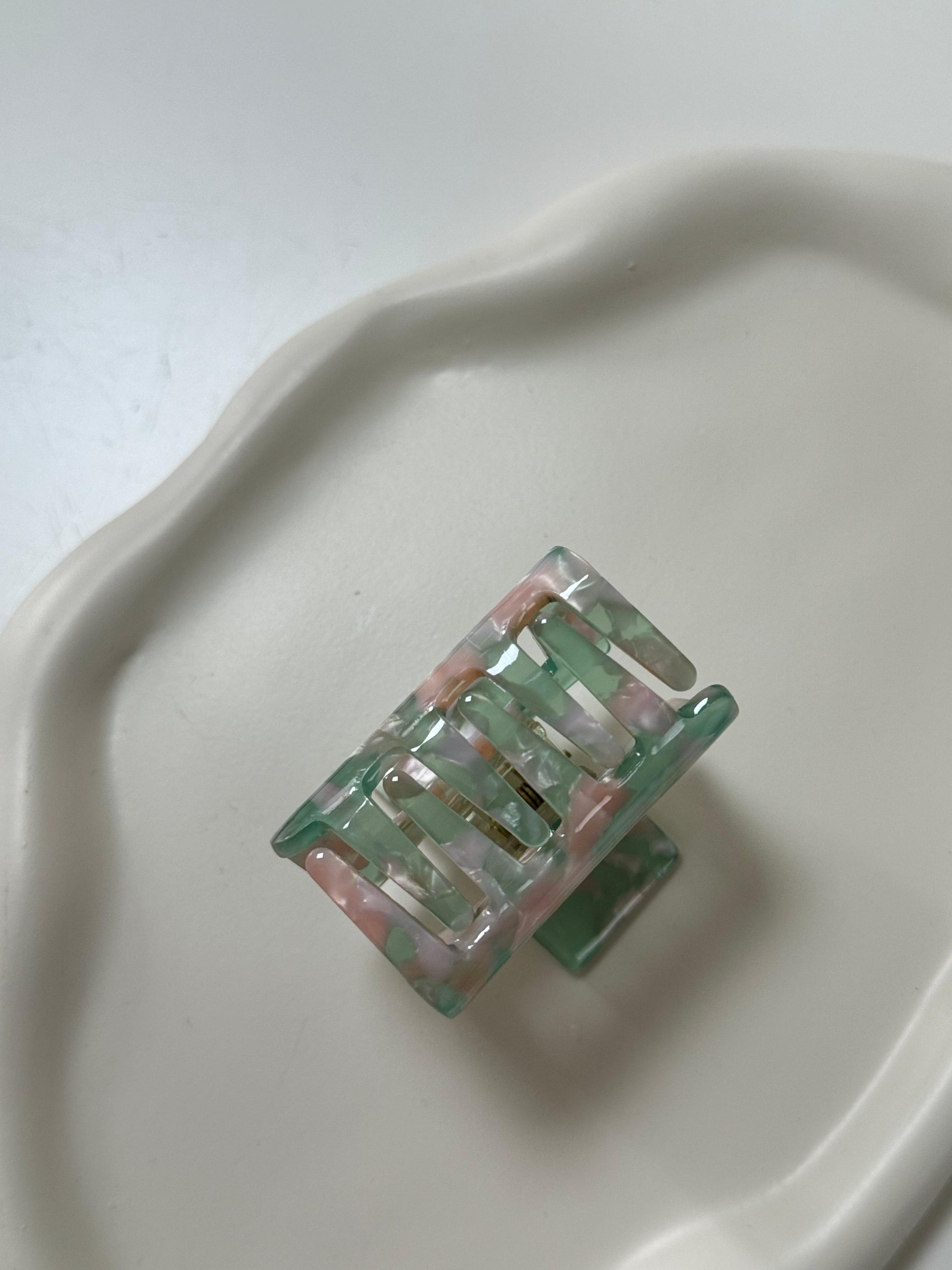 Die Haarklammer „Pastel Dream“ bringt mit ihrem einzigartigen Farbspiel aus sanftem Grün, Rosa und Perlweiß einen frischen Akzent in jede Frisur. Der elegante Muscheleffekt des hochwertigen Materials verleiht ihr einen edlen Look, während die stabile Verarbeitung für zuverlässigen Halt sorgt – perfekt für offene oder halbhochgesteckte Styles.